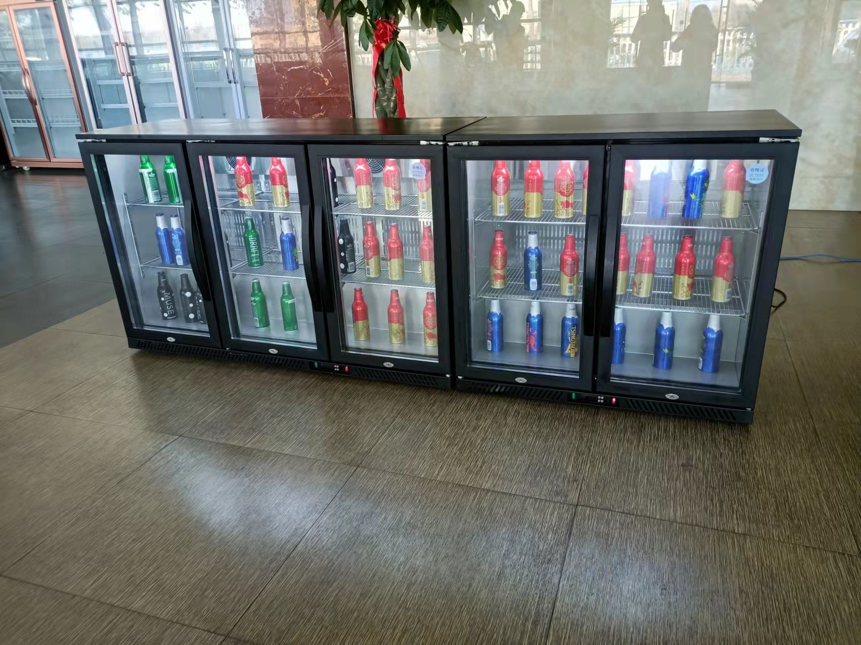 Pintu Kaca Minuman Energi Kulkas Mini Undercounter Beer Kulkas