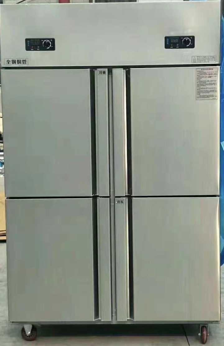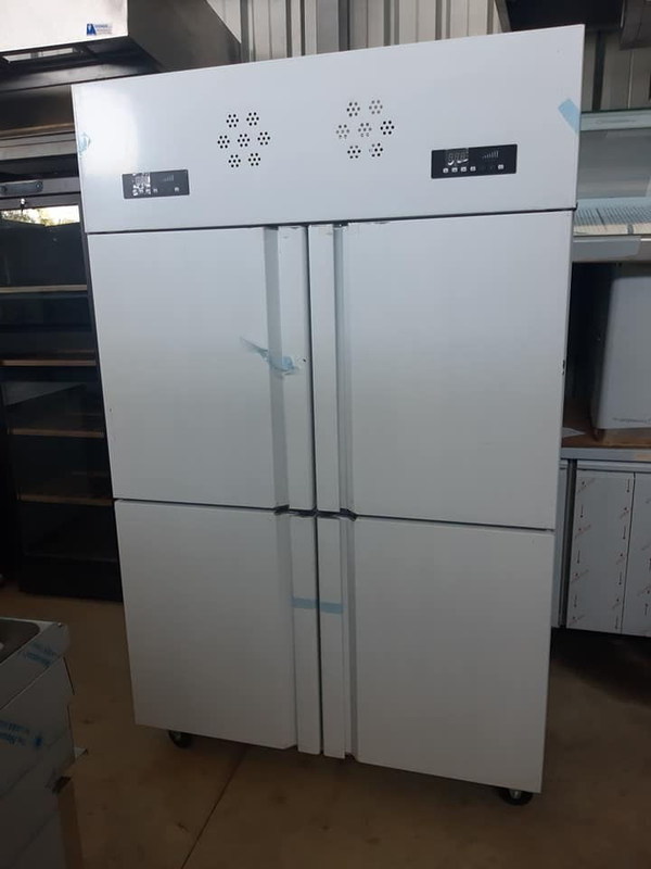 Freezer vertikal komersial untuk dapur dengan empat pintu dan baja tahan karat seluruh tubuh